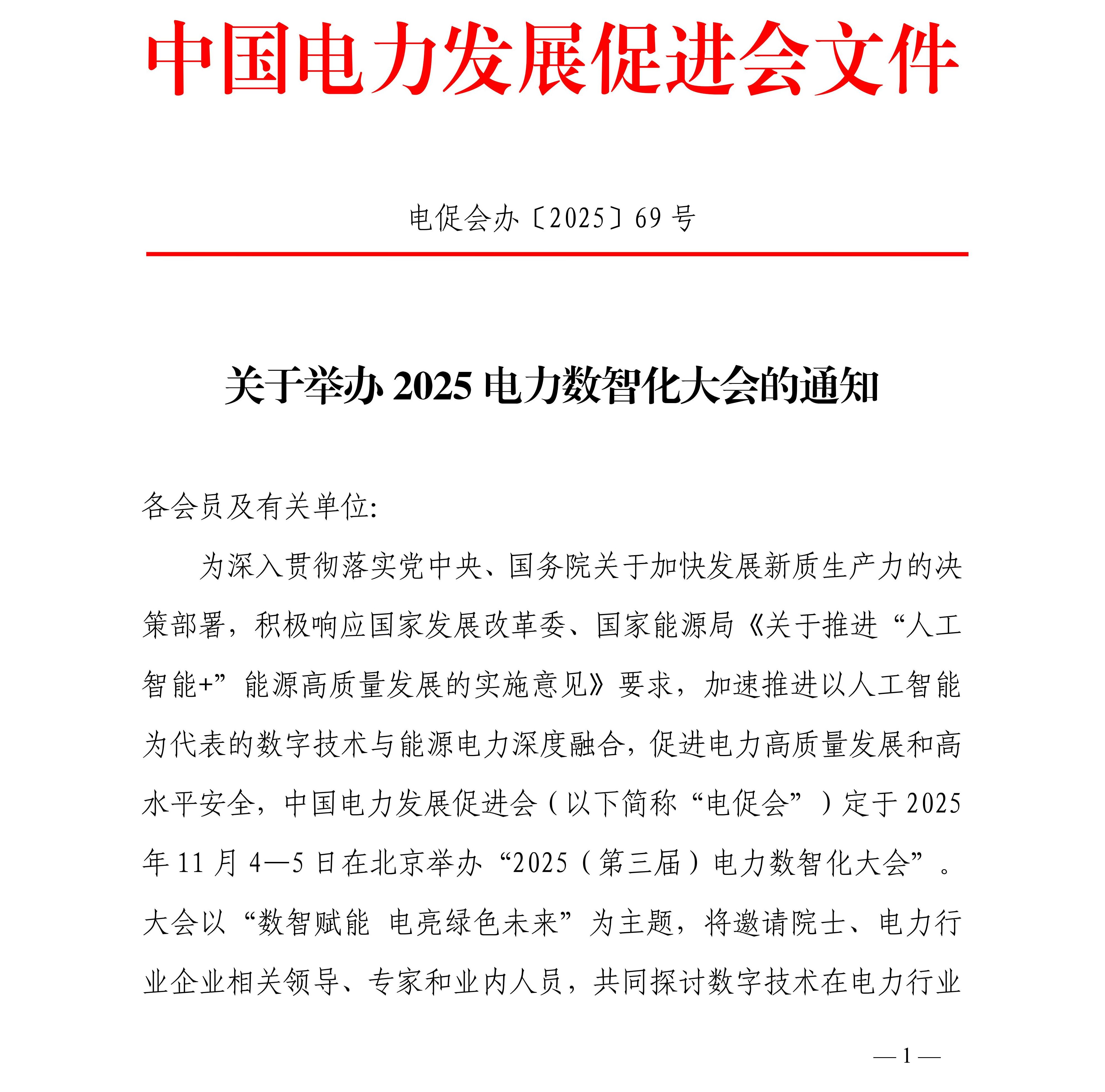 • 關于舉辦2025電力數智化大會的通知
