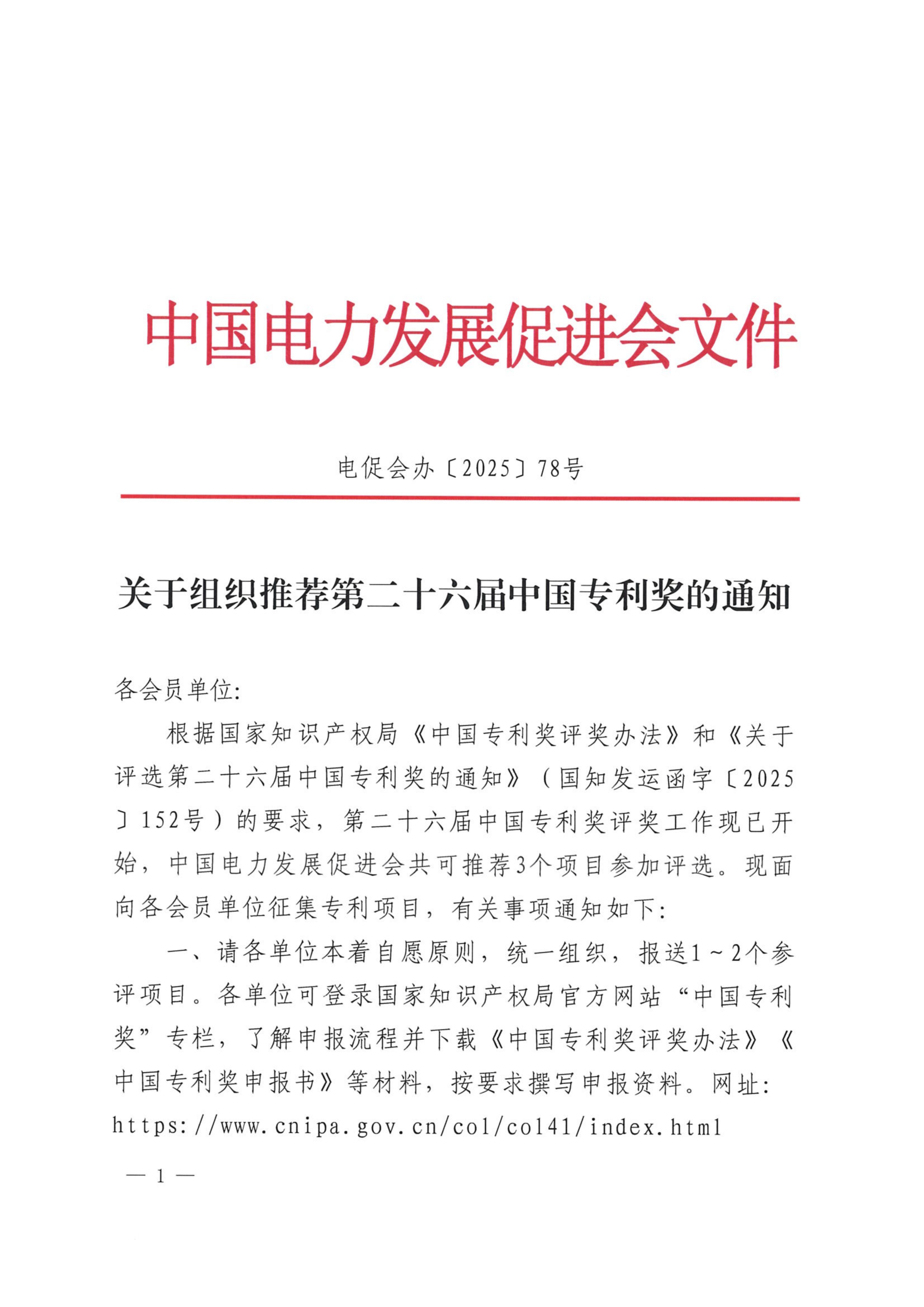 • 關于組織推薦第二十六屆中國專利獎的通知